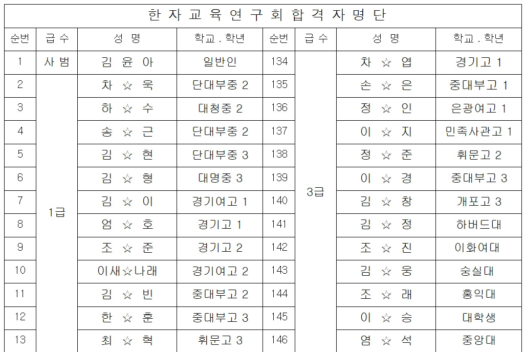 한국어문회 합격자명단